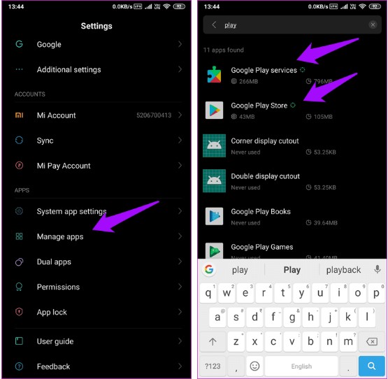 في كل مرة تستخدم فيها برنامج Google Play ، يتم إنشاء الملفات في ذاكرة التخزين المؤقت بحيث يعمل البرنامج في المرة التالية بسهولة أكبر وأسرع. قد تصبح هذه الملفات تالفة أو قديمة بمرور الوقت. يمكن أن يتسبب هذا في مشكلة عدم تسجيل الدخول إلى Google Play الخاص بك. لذلك ، في هذه الحالة ، يجب عليك مسح ذاكرة التخزين المؤقت لـ Google Play. بعد حذف ذاكرة التخزين المؤقت لـ Google Play Android والبيانات ، قم بتسجيل الدخول إلى حساب Google Play مرة أخرى وتحقق لمعرفة ما إذا كان قد تم حل مشكلتك أم لا. إذا كنت لا تزال تواجه مشكلة في تسجيل الدخول إلى حساب Google Play الخاص بك ، فيمكنك تجربة طرق أخرى.