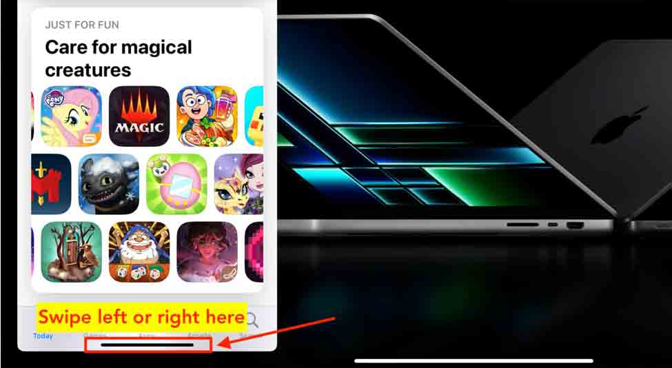 المس مع الاستمرار رمز تطبيق من Dock واسحبه فوق التطبيق المفتوح بالفعل . سيتم الآن وضع هذا التطبيق كنافذة رفيعة فوق تطبيق ملء الشاشة الحالي. إذا لم يكن التطبيق مرئيًا على Dock ، فانقر فوق زر مكتبة التطبيقات ، وهو الرمز الموجود في أقصى اليمين في Dock ، واسحب أحد التطبيقات من هنا .