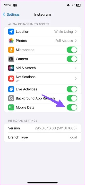 يتيح لك iPhone تقييد بيانات الهاتف المحمول في بعض التطبيقات حتى لا تفرط في استخدام البيانات. على سبيل المثال، إذا قمت بإيقاف تشغيل بيانات الهاتف المحمول لـ Instagram، فلن يتم تحميل الموجز. اتبع الخطوات أدناه وقم بتنشيط بيانات هاتفك مرة أخرى: