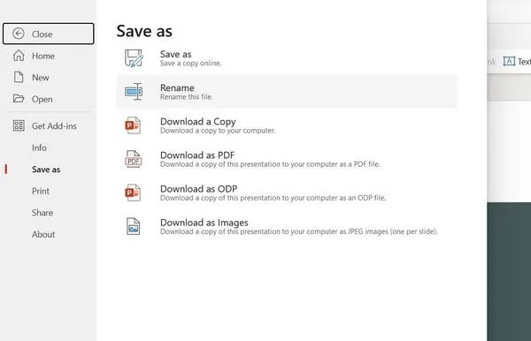 هل تريد تنزيل العرض التقديمي الخاص بك أو حفظه على جهاز خارجي؟ انقر فوق "File" وحدد "Save As".