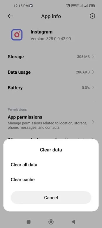 12- مسح ذاكرة التخزين المؤقت في Instagram