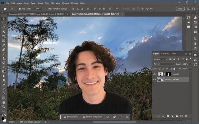 يمكنك تغيير خلفية صورتك باستخدام Photoshop. يستطيع برنامج Photoshop عن طريق الذكاء الاصطناعي التعرف على موضوع الصورة من خلال قسم Select Subject. كما يمكن للمستخدم تعديل حدود الموضوع المحدد. بعد التعرف على الموضوع، يمكنك إضافة الصورة المطلوبة لخلفية الصورة في الطبقة الجديدة. بعد ذلك، سيتم تغيير صورة الخلفية إلى صورتك المفضلة.