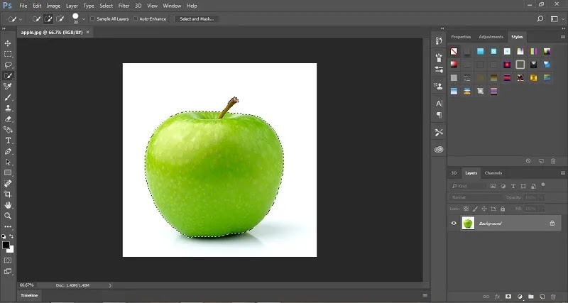 قد لا يكون التحديد التلقائي للموضوع دقيقًا. إذا كنت بحاجة إلى التعديل، فيجب عليك الانتقال إلى وضع Select & Mask.