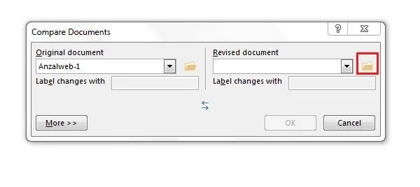 مرة أخرى، في قسم Revised document، انقر على أيقونة المجلد. بهذه الطريقة، أدخل الملف الثاني لمقارنة النص في Word .