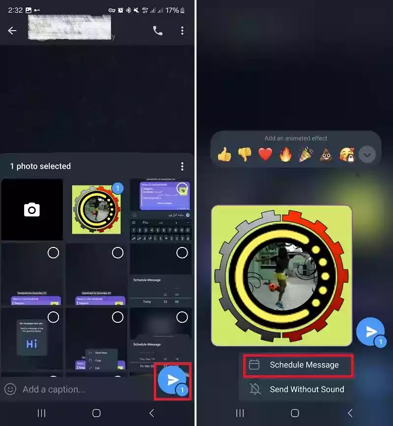 2- إرسال الصور أو الفيديوهات أو الملفات بطريقة مجدولة في التليجرام