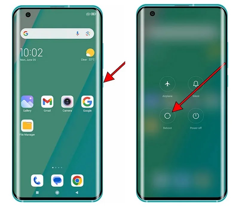 يمكن أن تؤدي إعادة تشغيل الهاتف في كثير من الحالات إلى إصلاح مواطن الخلل البسيطة في البرامج، بما في ذلك عدم عمل بصمة الإصبع على هاتف Xiaomi. اضغط مع الاستمرار على زر تشغيل الهاتف وانقر فوق Restart او Reboot. انتظر حتى يتم إيقاف تشغيل الهاتف وتشغيله بالكامل. ثم تحقق لحل المشكلة.
